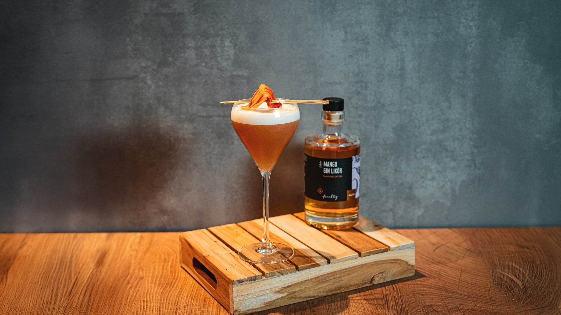 Der "Mango No. 5" ist ein eleganter Cocktail, der tropische Aromen mit einer dezenten Herbnote verbindet. Der Mango Gin Likör verleiht diesem sommerlichen Drink eine fruchtige Basis, während der weiße Portwein für Tiefe und Verjus für eine angenehme Säure sorgt. Die Zugabe von Aqua Faba schafft eine samtige Textur und eine schöne Schaumkrone. Besonders an warmen Tagen entfaltet dieser Cocktail seinen vollen Charakter und bringt Urlaubsgefühle direkt zu Ihnen nach Hause.