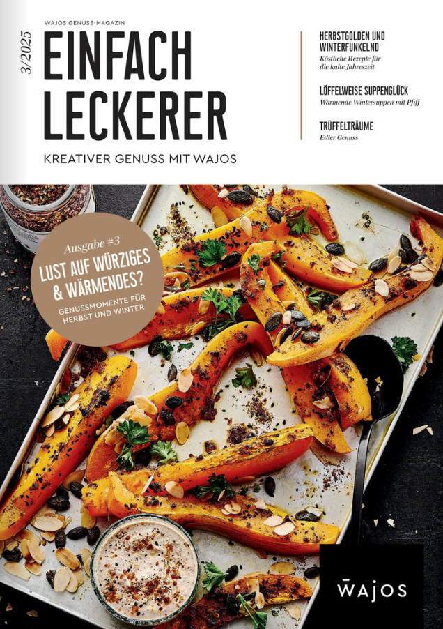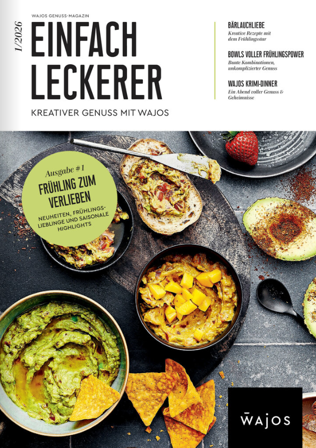 Wir lieben es, neue Rezepte zu kreieren und unsere Produkte immer wieder von einer neuen, kreativen Seite zu entdecken. Die besten Rezepte packen wir jede Saison in unser Wajos Genuss Magazin. So haben Sie für Frühling, Sommer, Herbst und Winter immer die passenden Rezepte samt unseren Produktlieblingen auf einen Blick zusammen. Die Magazine erhalten Sie in Printform in unseren Stores und auch auf dieser Seite digital zur Ansicht.