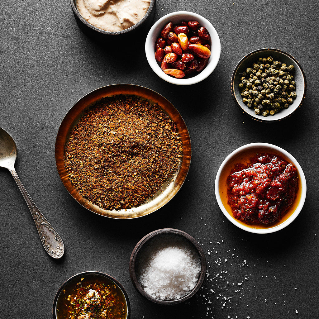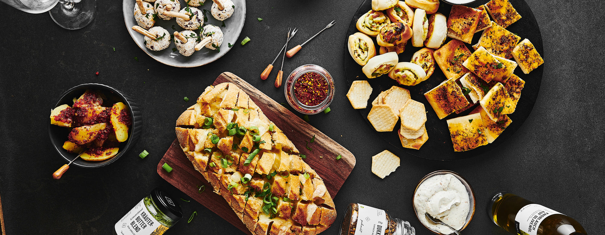 Zutaten für 25 Stück: 300 g Frischkäse, Wajos Dukkah Dip,