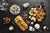 8 g Cheddar – gerieben, 50 g getrocknete Cranberries – fein gehackt, Salz, Pfeffer, 50 g Mandelstifte – fein gehackt, 50 g Pekannüsse – fein gehackt, 25 Salzstangen, 3 Stiele Petersilie – fein gehackt.
