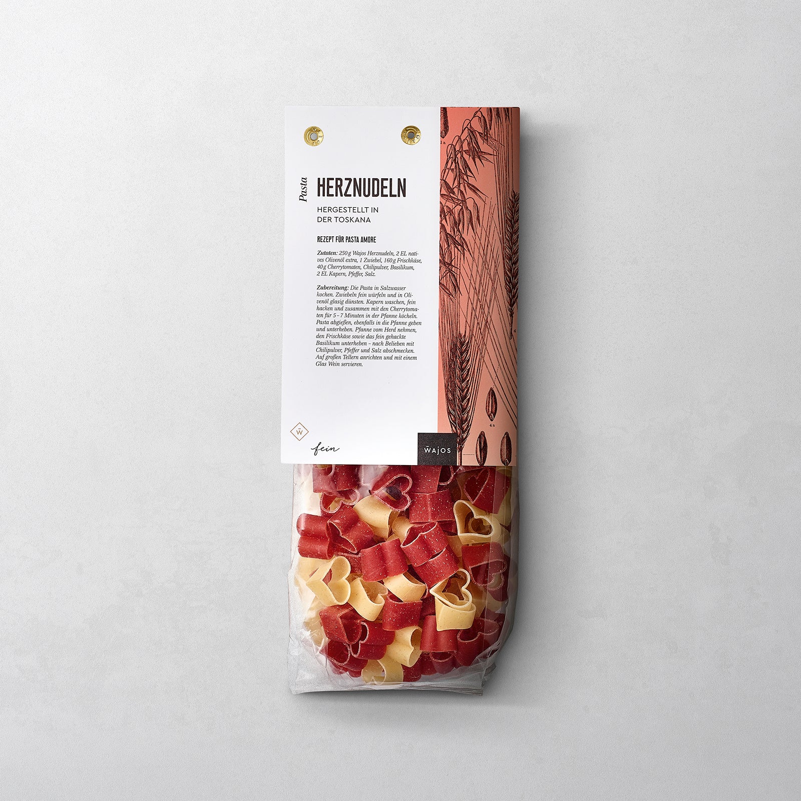 Diese Nudeln aus Hartweizengrieß, verfeinert mit Weizenkeimen und Tomaten beeindrucken mit ihrem besonderen Geschmack sowie mit ihrer Herzform. So wird ein einfaches Abendessen ganz schnell zu einem