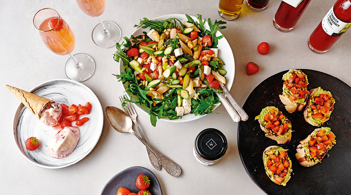 MIT ERDBEER-PFEFFER CREMA UND ERDBEER BRUSCHETTA.