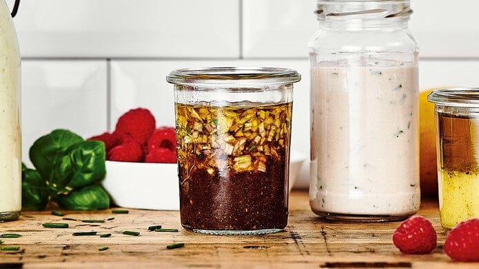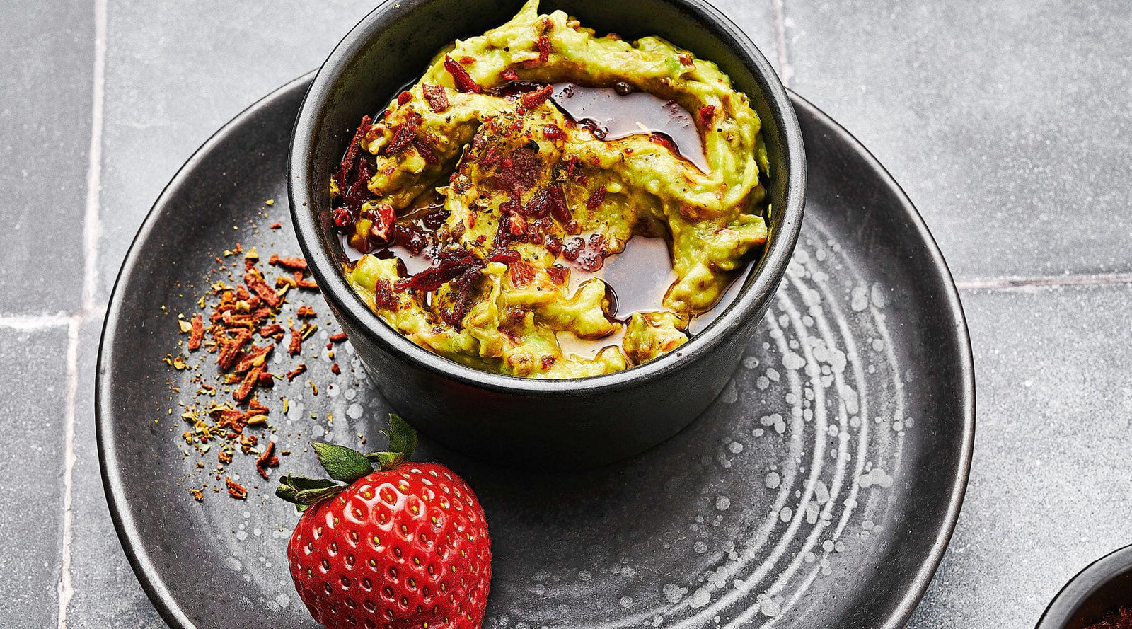 49% Aceto Balsamico di Modena (g.g.A.) (Weinessig, Traubenmostkonzentrat), Invertzuckersirup, Glukosesirup, 5,3% Erdbeersaft aus Konzentrat, 1% natürliches Pfeffer Aroma, natürliches Aroma, Antioxidationsmittel: KALIUMMETABISULFIT.