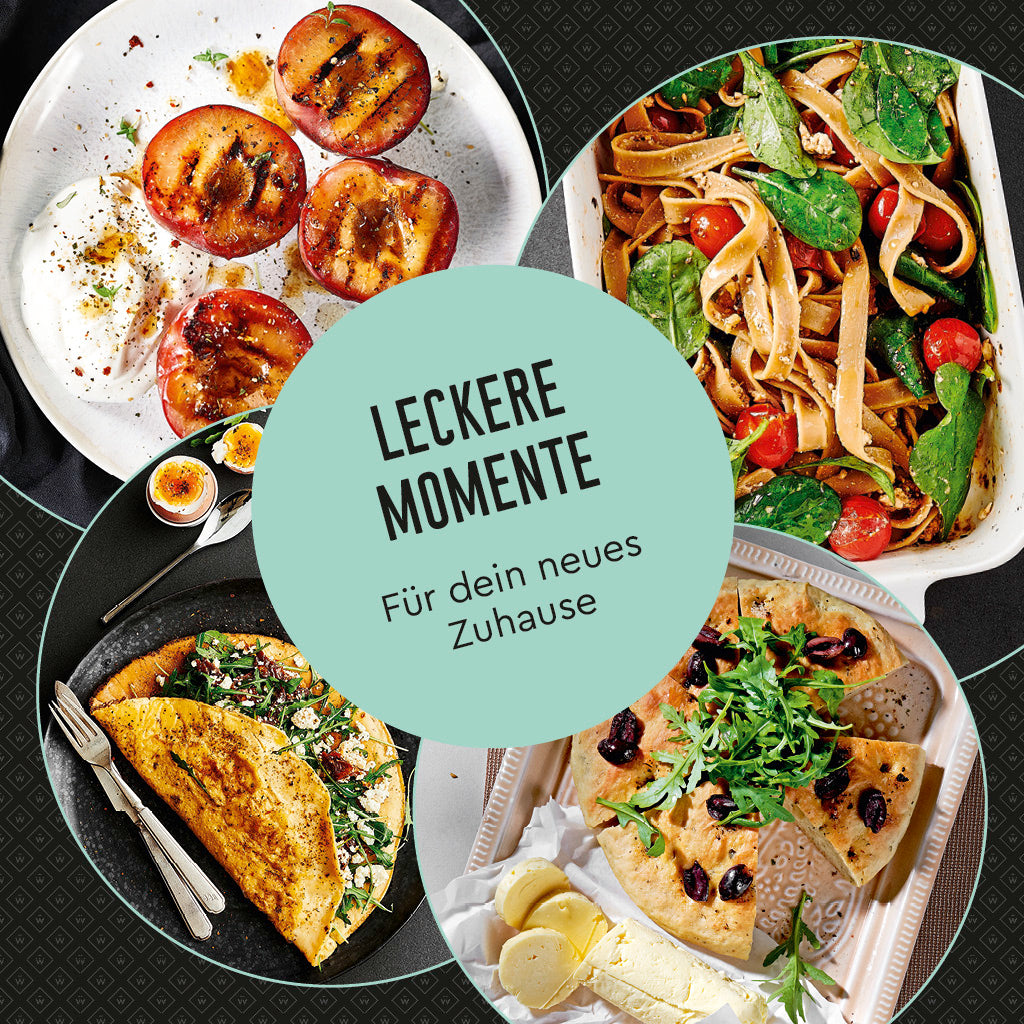 Als moderne Variation zu Brot und Salz zum Einzug vereint das Set vier beliebte Spezialitäten aus der Wajos Genusswelt: aromatisches Gewürzsalz Provence, würziger Steak Pfeffer, fein abgestimmtes Bruschetta Öl sowie unsere cremige Balsamico Crema. Ob zum Verfeinern mediterraner Gerichte, für kreative Kochmomente oder für gemeinsame Abende mit Freunden – dieses Set bringt Genuss und Lebensfreude in jedes neue Zuhause.