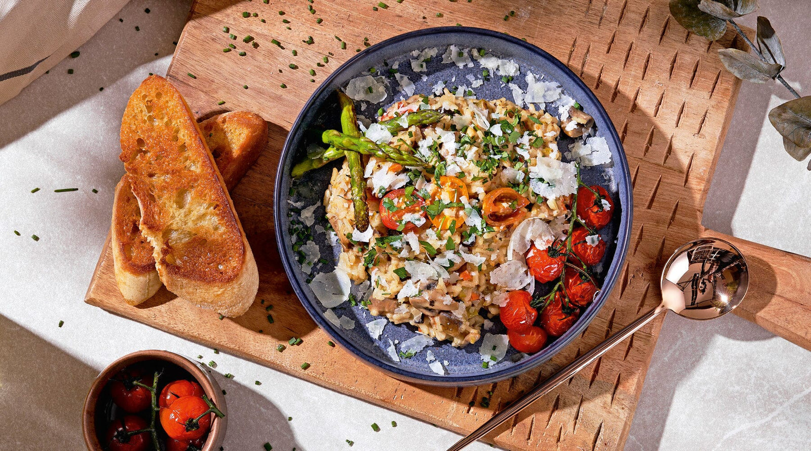 93% Carnaroli Reis, 3% Kirschtomaten, rote Beete, Zwiebeln, Karotten, Petersilie, Lauch, Basilikum.