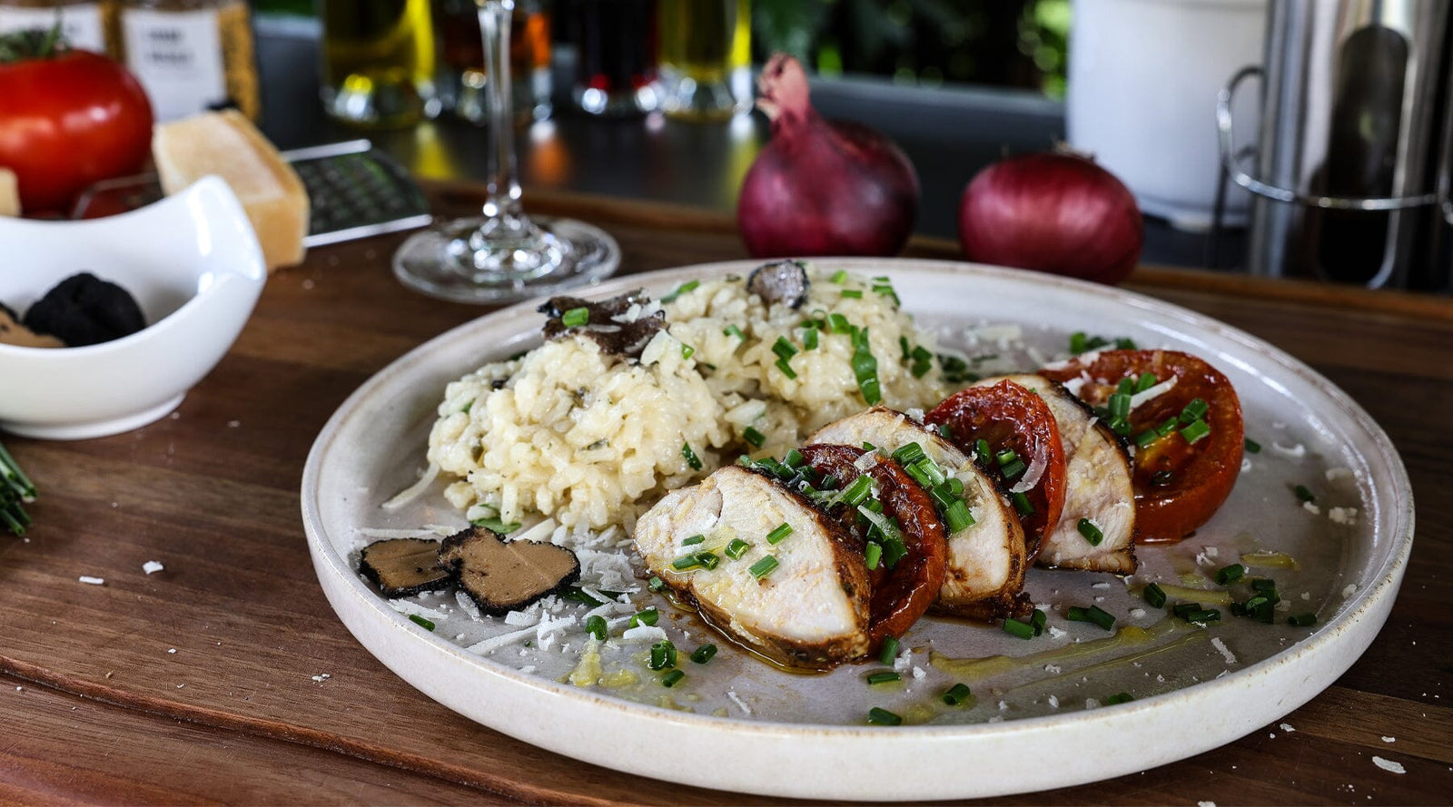 98,6 Carnaroli Reis, 1% Sommer-Trüffel, Petersilie, Lauch, natürliches Trüffel Aroma.
